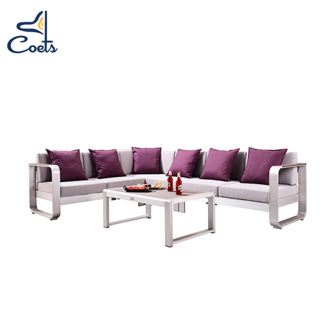 Coets mobiliário pátio alta e baixa temperatura forma l sofá de canto ao ar livre com mesa de café